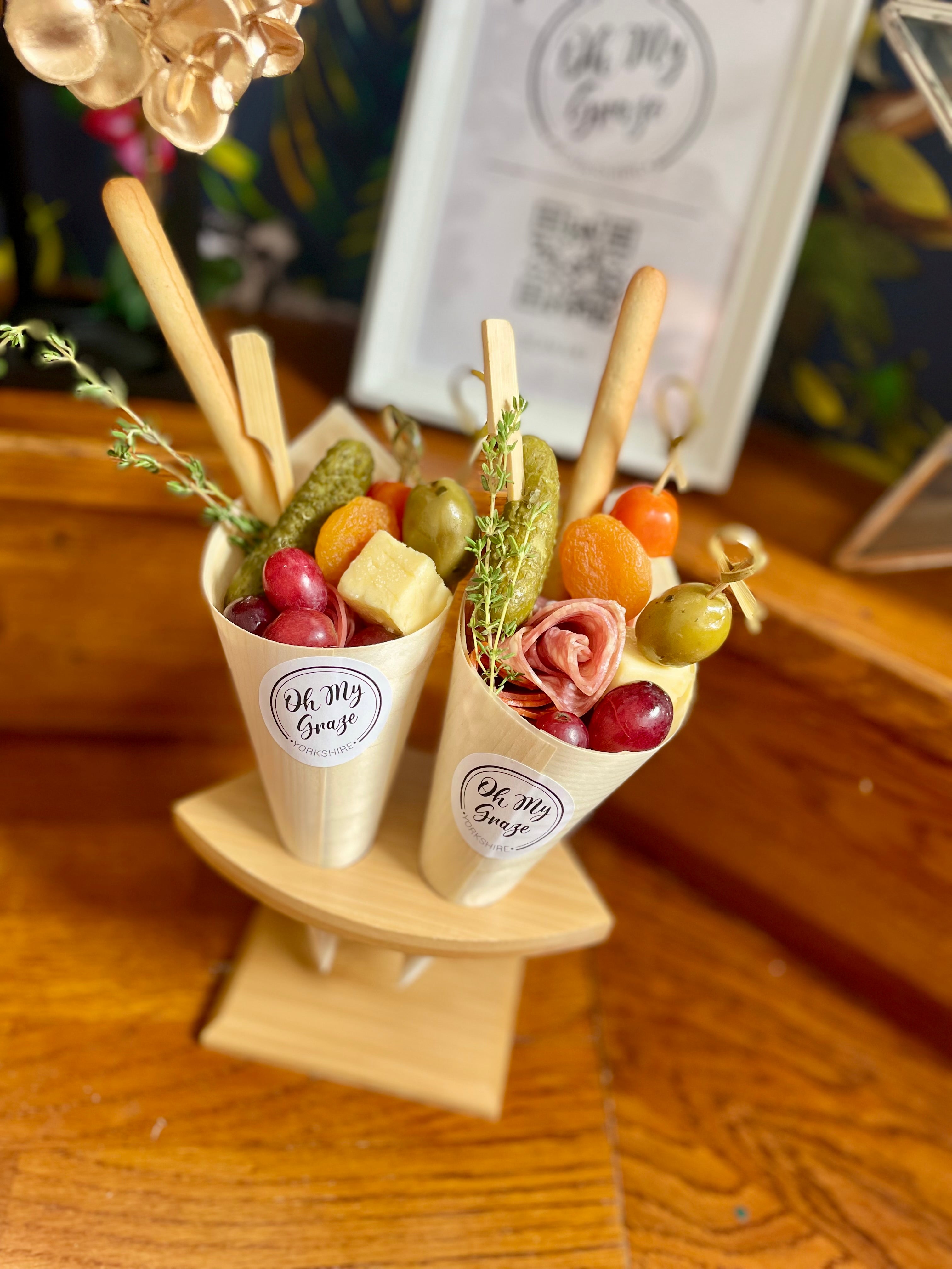 Our individual graze bowls, cups and cones are perfect for product launches and corporate events.